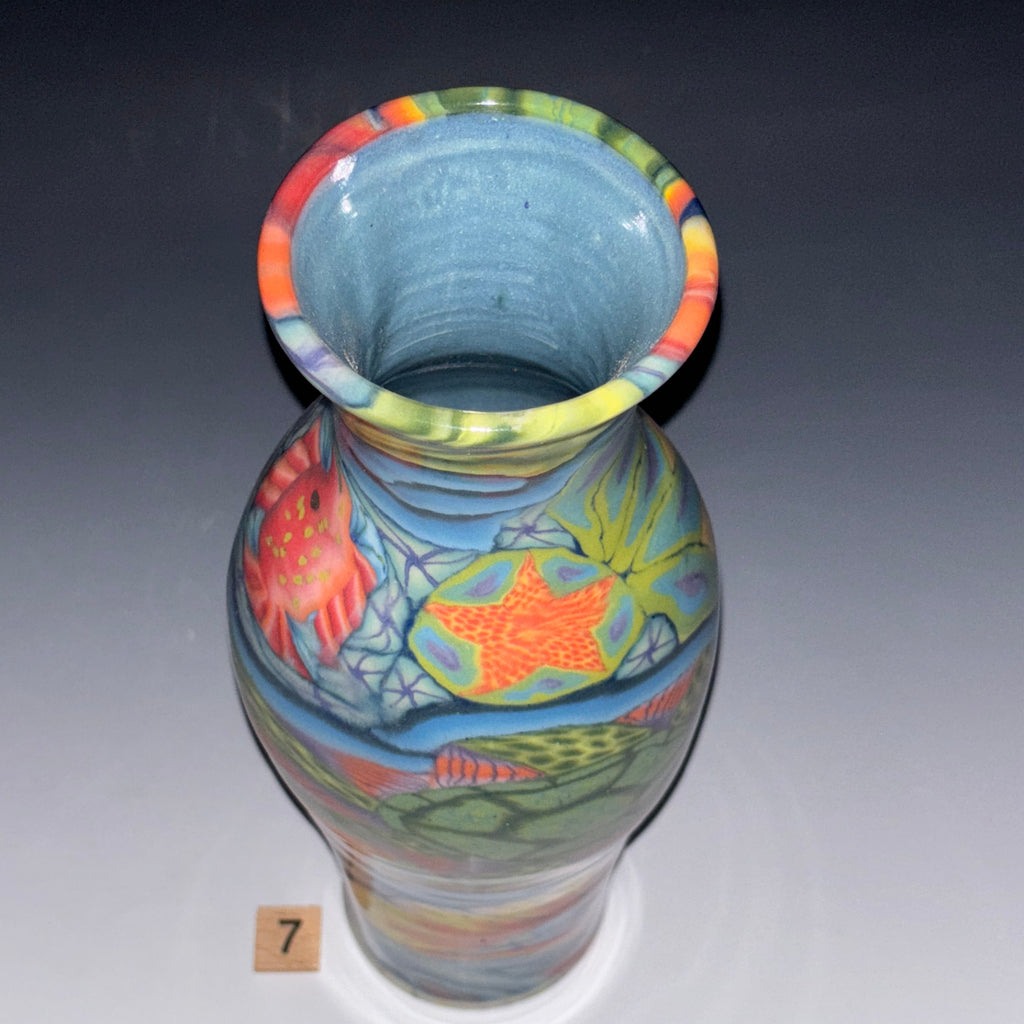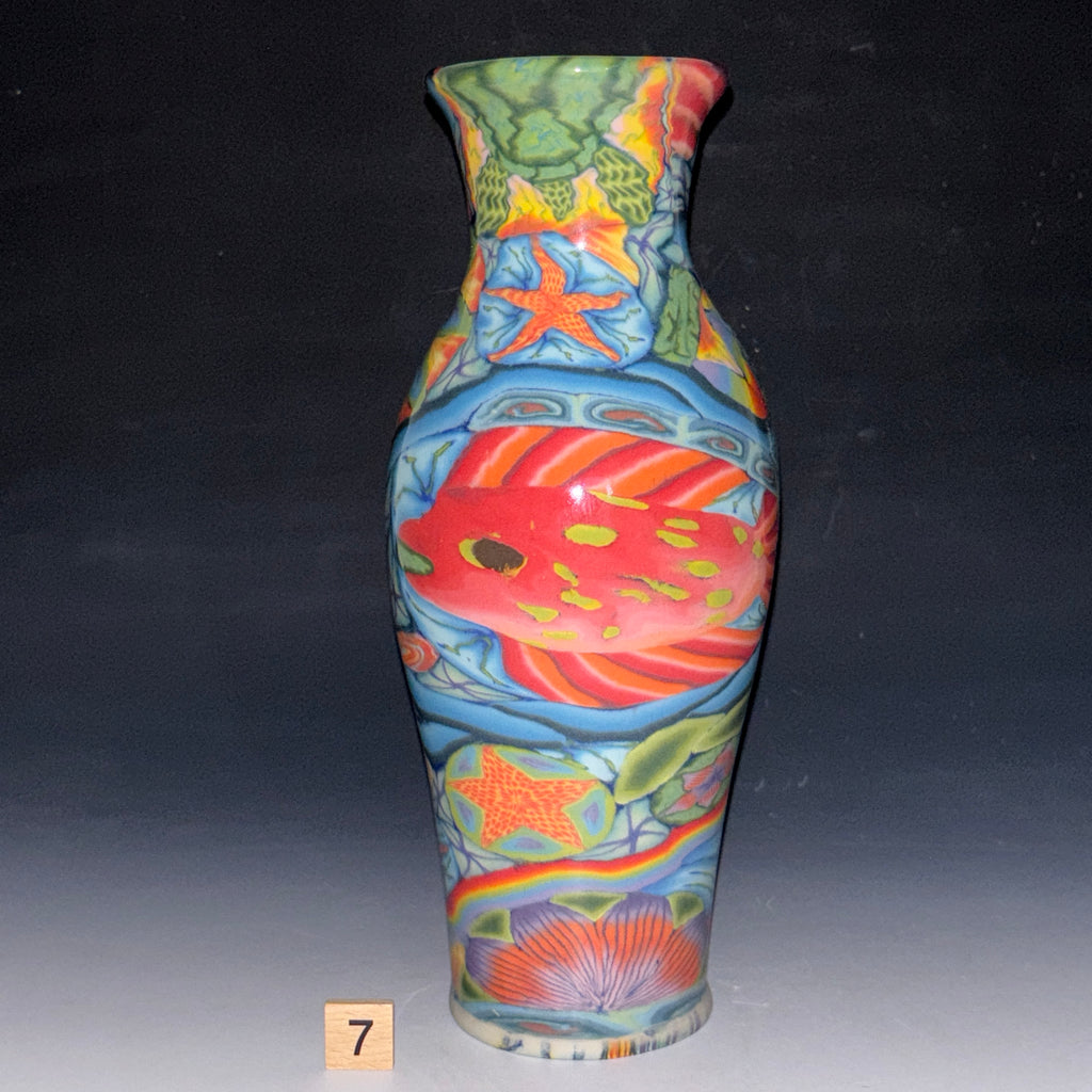 Original work by Dean McRaine of LightWave studio. From the Turtle Soup series - this is a wheel thrown porcelain vase, high fired (2300 degrees) using my colored clay millefiori technique. It is glazed with a clear glaze for durability and ease of cleaning (lead-free, non-toxic, food safe). This is a handmade original item and as such, there can be small irregularities.